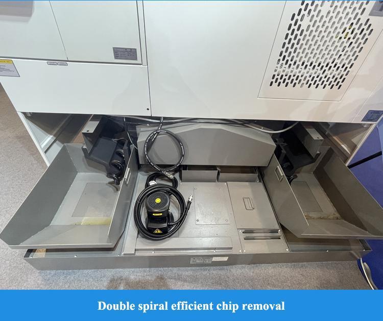 2. Système Fanuc Oi-MF TAPE(l)α 3. Système Siemens 828D CNC 4. Broche mécanique à connexion directe 12000 tr/min 5. Broche motorisée 16000 tr/min, 24000 6. Plateau rotatif 4ème axe 7. Refroidissement interne 2MPa, 3MPa, 5MPa, 7MPa 8. Séparateur huile-eau 9. Convoyeur à copeaux à chaîne 10. Pistolet à eau propre 11. Inspection des outils et des pièces 12. Porte automatique 13. Verrouillage de porte de sécurité 14. Armoire électrique et climatisation |